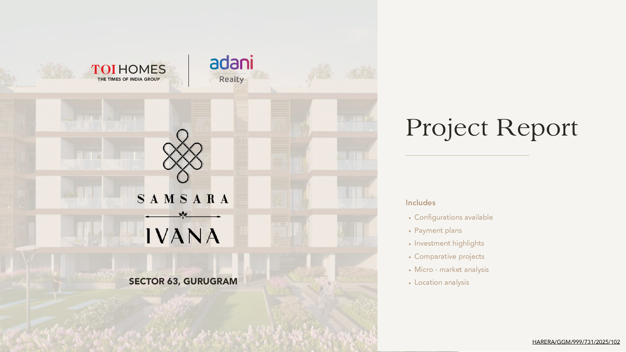 Yes, Adani Samsara Ivana 2.0 is RERA registered with RERA ID HARERA/GGM/999/731/2025/102.
