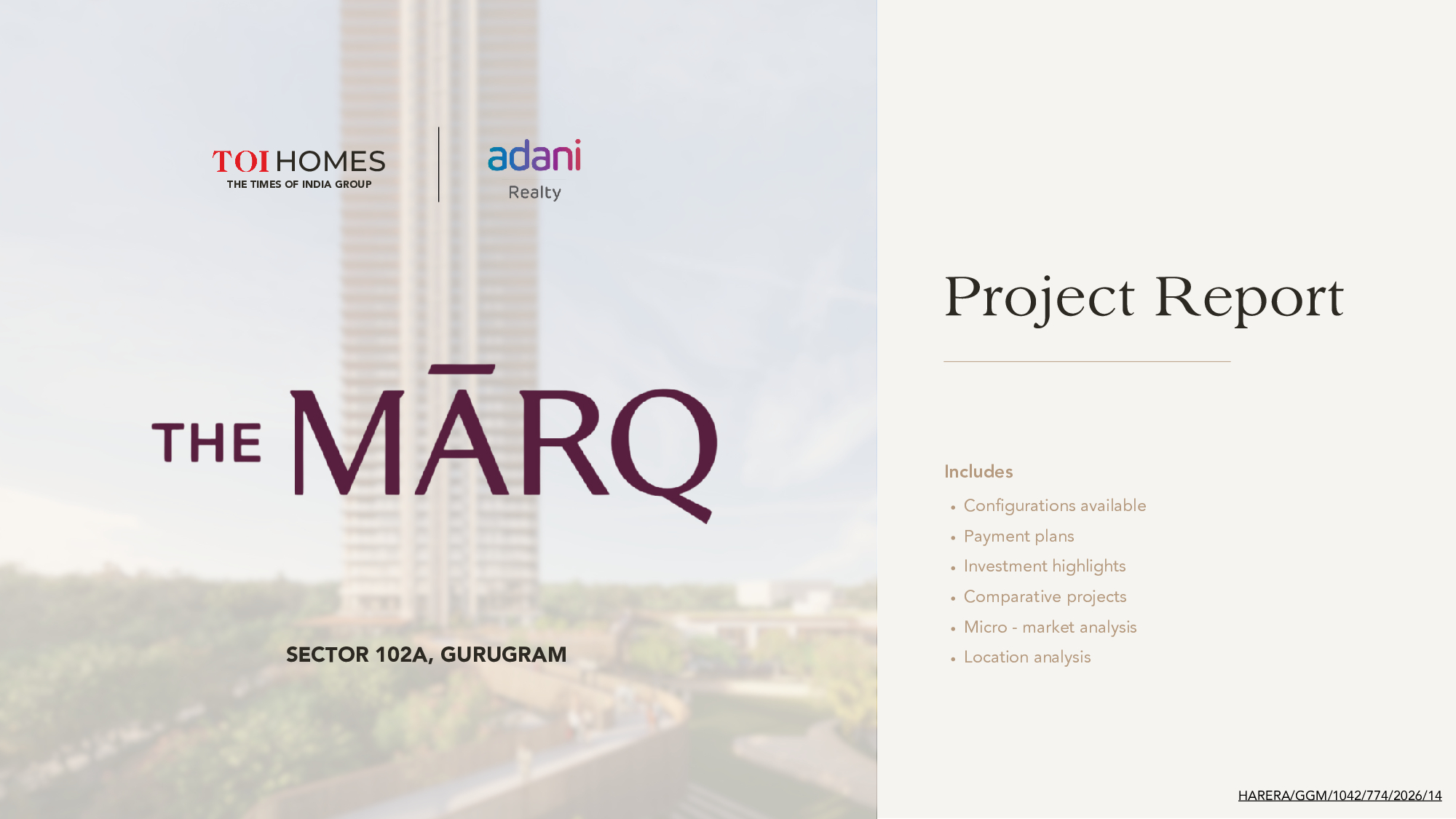 Adani The Marq is a premium luxury residential development located in Sector 102, Dwarka Expressway, Gurugram, one of the fastest-growing residential corridors connecting Delhi and Gurugram. Developed by Adani Realty, the project is designed to deliver modern urban living through thoughtfully planned residences, expansive green spaces, and world-class lifestyle amenities.