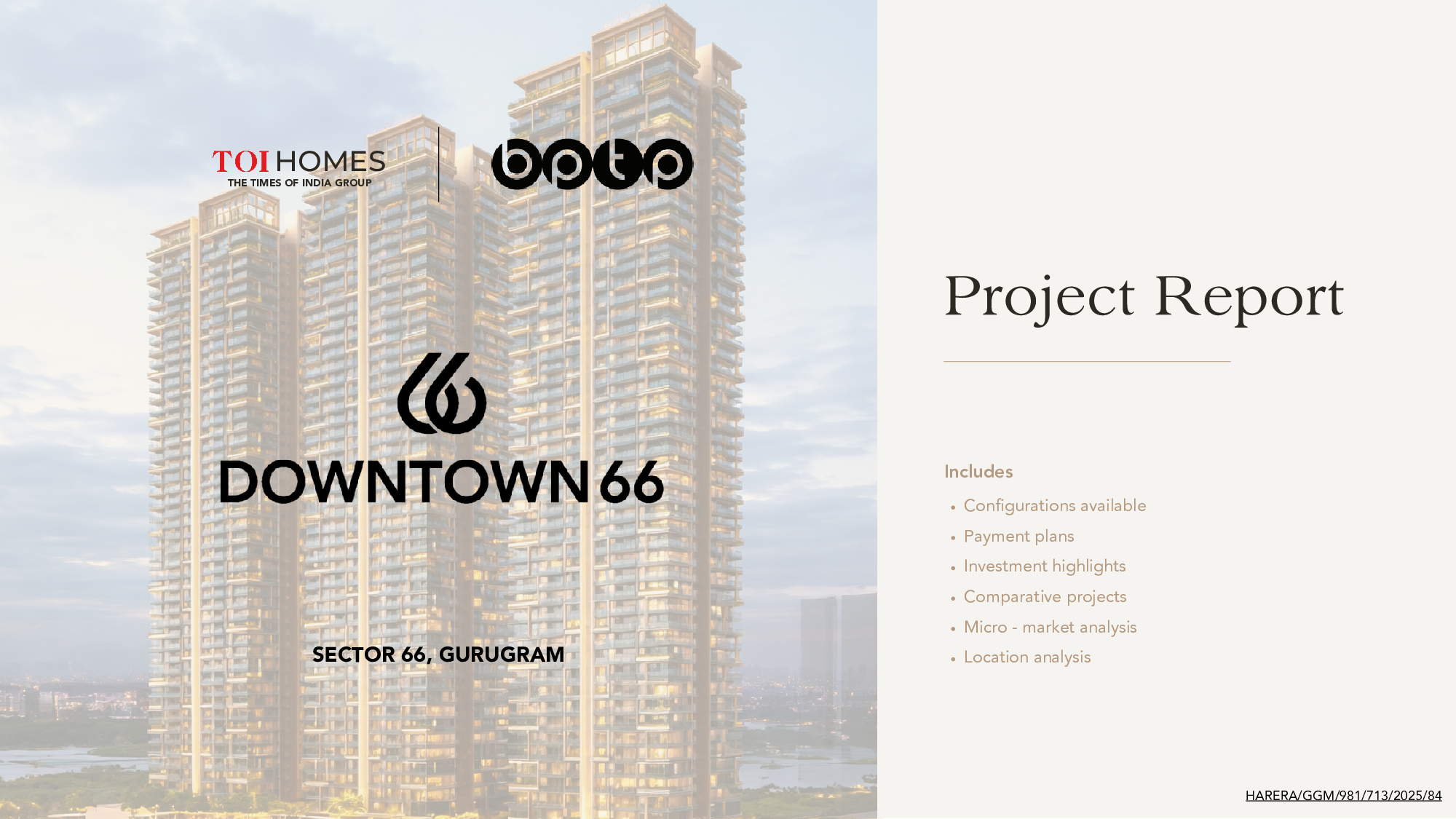 Yes, BPTP Downtown 66 is RERA registered with RERA ID HARERA/GGM/981/713/2025/84.