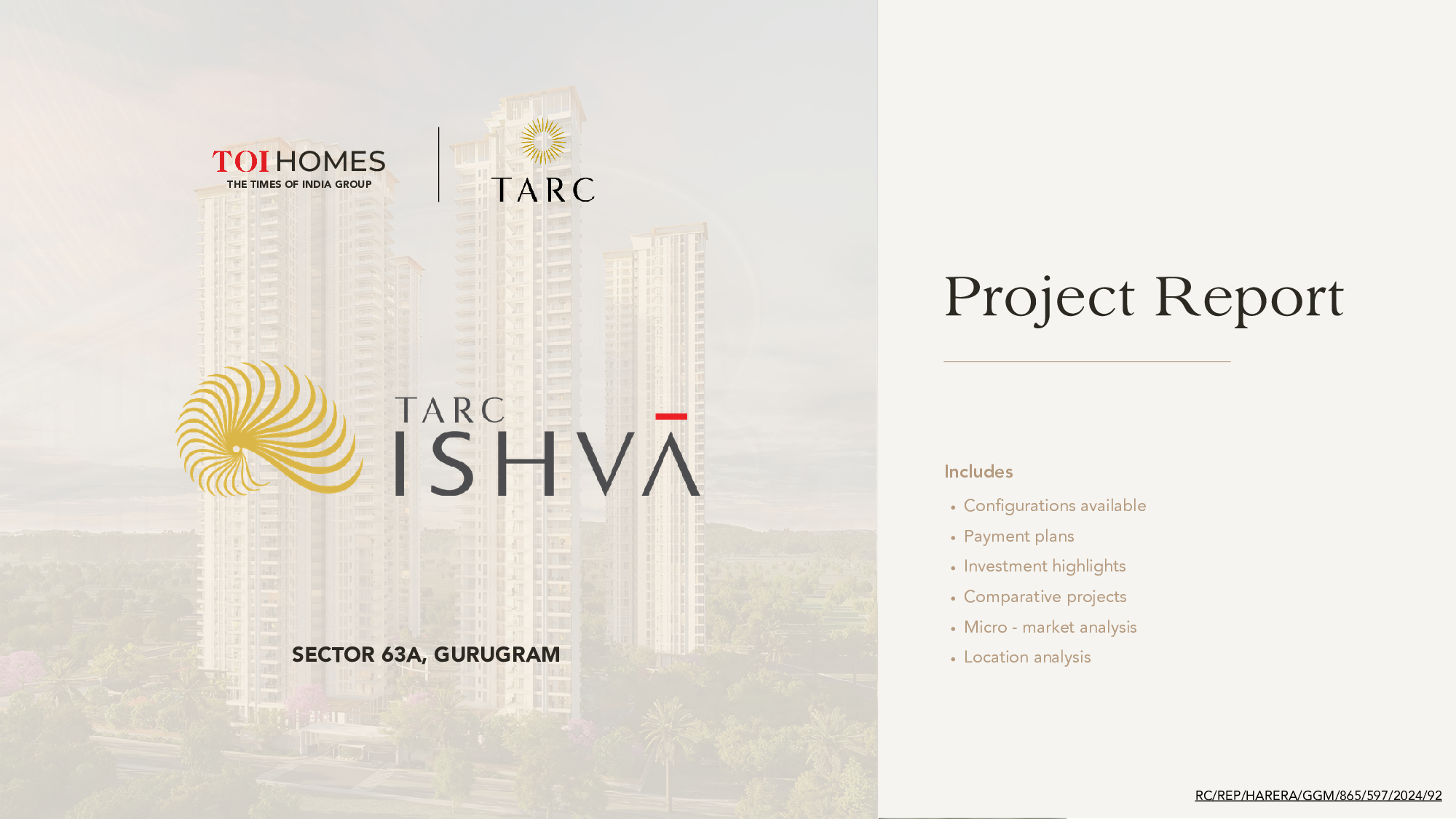 Yes, TARC Ishva is RERA registered with RERA ID HARERA/GGM/865/597/2024/92.